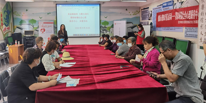 2022年9月,密云区阳光利民社会工作事务所利用中秋节、教师节、阿尔兹海默病日等特殊节点,以老年人为重点,组织开展形式多样的敬老爱老活动,在专业社会心理指导师的陪伴和辅导中,让同龄老年人一起调整身心,以积极的心态面对当下、过去和未来。