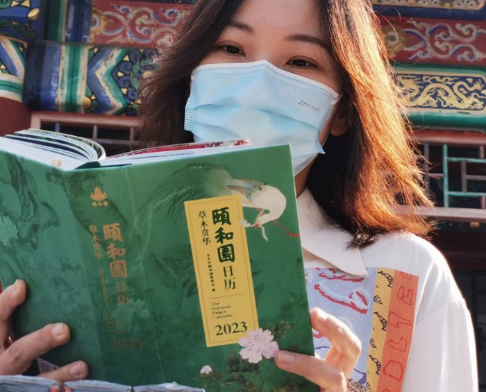 目前,市民游客可以通过颐和园新文创淘宝店铺、文物出版社天猫旗舰店、颐和园线下文创店等渠道购买《颐和园日历·2023(草木贲华)》。