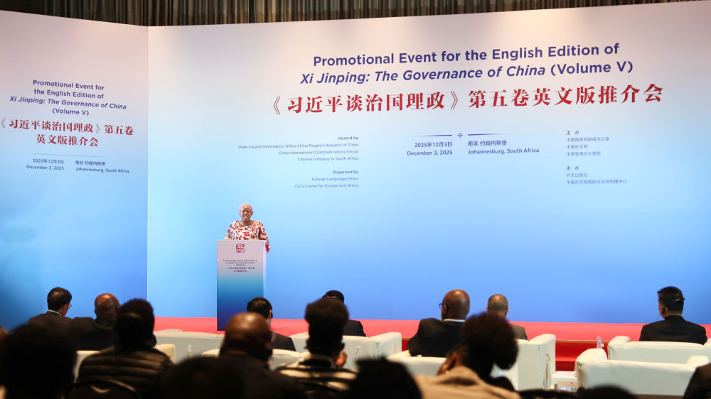 南非非国大第二副总书记,总统府规划、监督和评估部长马罗佩妮·拉莫豪帕在致辞中表示,《习近平谈治国理政》第五卷系统阐述了习近平主席关于中国式现代化、脱贫减贫、科技创新和全球发展合作等方面的重要理念,为全球南方国家提供了有益借鉴。南中两国在坚持多边主义、促进共同发展等方面高度契合,南非将继续推动《2030年国家发展规划》与“一带一路”倡议对接,共同提升全球南方在国际事务中的代表性和发言权,推动全球治理体系朝着更加公正合理的方向发展。