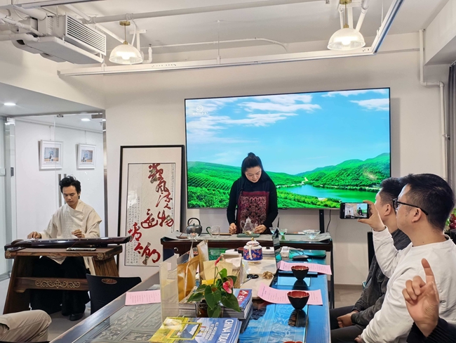 云宝堂中医第六代传承人蒙犀身着传统服饰,现场抚琴而谈,将古琴的五音与中医的五脏理论巧妙结合,分享了“音乐即良药”的古老智慧。