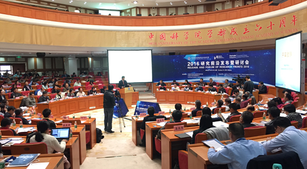 新华网北京11月1日电(王莹)10月31日,由中国科学院科技战略咨询研究院、中国科学院文献情报中心与Clarivate Analytics公司联合举办的2016研究前沿发布暨研讨会在北京举行,《2016研究前沿》报告全球发布。