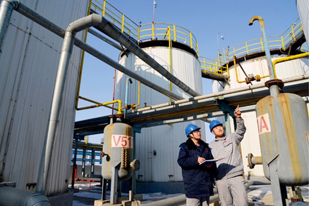 辽宁奥克化学股份有限公司原料罐区的操作人员正在巡检