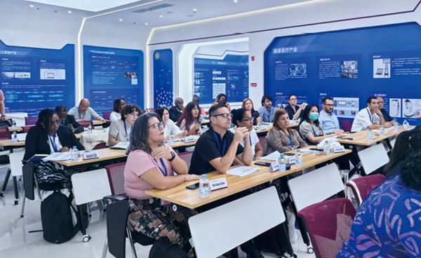 2025年9月7日,“南南合作2025气候投融资专题研讨班”学员参观广东清大创新研究院,并认真聆听科技成果转化实践讲座