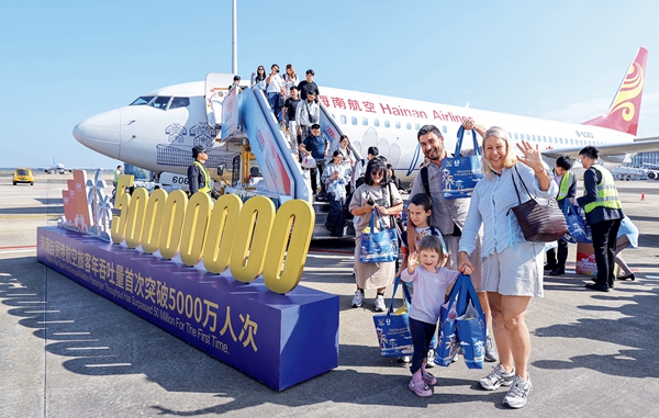 2025年12月30日,海南自贸港航空旅客年吞吐量成功突破5000万人次。图为当天乘客抵达海口机场