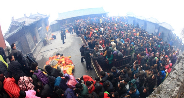 众多游客到金顶朝圣 图/余东杰