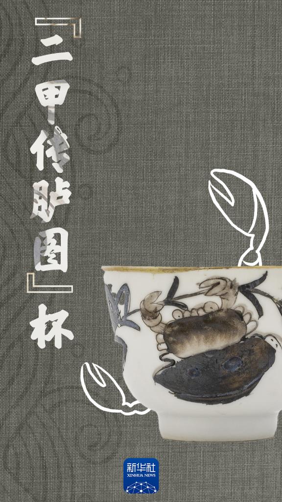 杯上的图案为“两只螃蟹传递芦苇”
