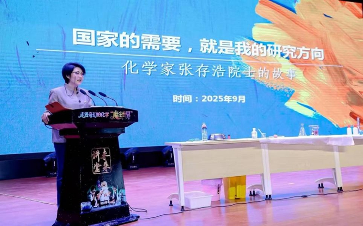 中国科技馆展览教育中心副主任叶菲菲为同学们声情并茂地讲述了中国科学院院士、著名物理化学家、国家最高科学技术奖获得者张存浩的故事。张存浩院士胸怀祖国、服务人民的爱国精神,勇攀高峰、敢为人先的创新精神,追求真理、严谨治学的求实精神,淡泊名利、潜心研究的奉献精神,集智攻关、团结协作的协同精神,甘为人梯、奖掖后学的育人精神深深感动了在场的每个人,也在同学们的心中树立了学习追求的榜样。