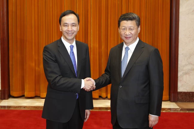 2015年5月4日,中共中央总书记习近平在北京人民大会堂会见中国国民党主席朱立伦