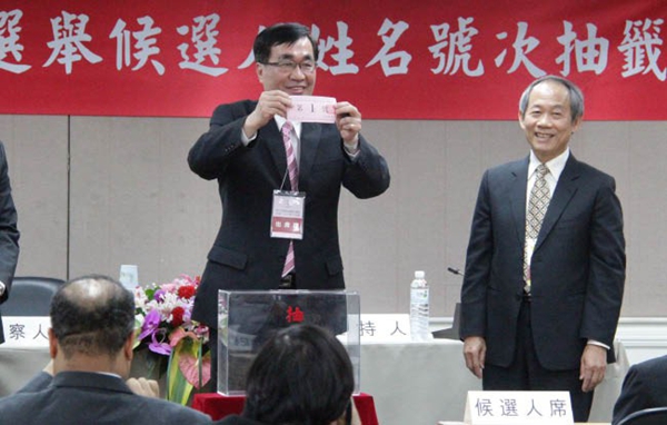 2015年12月14日,台湾“中选会”在台北举行2016年“大选”正、副候选人号次抽签。中国国民党秘书长李四川代表朱立伦和王如玄抽中1号