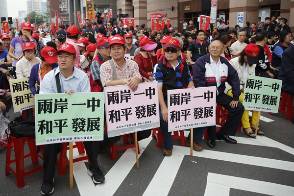 2016年5月18日,千余名台湾民众聚集在台北民进党中央党部前,呼吁即将上台的当局坚持“九二共识”