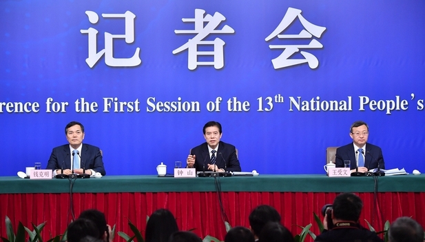 3月11日,十三届全国人大一次会议新闻中心举行记者会,邀请商务部部长钟山、副部长兼国际贸易谈判副代表王受文、副部长钱克明就“推动形成全面开放新格局推动商务事业高质量发展”相关问题回答中外记者提问。