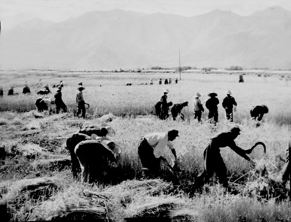 驻藏人民解放军在拉萨东郊助民秋收