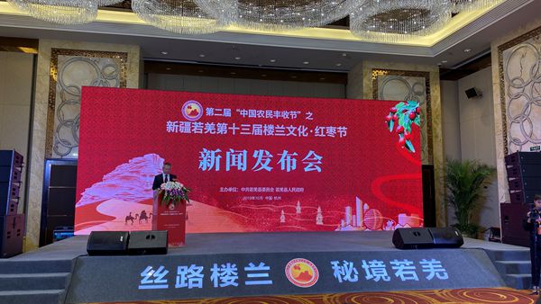 2019年10月15日,第二届“中国农民丰收节”之新疆若羌第13届“楼兰文化·红枣节”新闻发布会在浙江省杭州市洲际酒店举行。