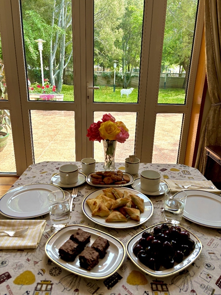 在介绍肉类菜肴这一章,作者描绘了以母亲和祖母为中心的家庭聚餐场面,无论是大人还是孩子,都会适时伸手帮忙,摆放餐具、上菜、倒酒,一边准备、享用美食,一边聊天。作者还特别讲述了其与丈夫在2002年到库夫尼西亚小岛(Koufonisia)度假的经历,民宿老板夫妇不但用美食和热情服务招待他们,还不收取任何费用,希腊人的热情好客跃然纸上。在这一章介绍的希腊特色菜包括焗烧通心粉、穆萨卡、烤羊腿、考猪里脊卷等。其中还特别提到希腊人“妈妈的味道”和自己家庭生活的温馨瞬间,以及外交官子女这一特殊群体。不论身在何处,家的味道是永远的牵挂。为了更符合中国人的口味,作者还对婆婆的菜谱进行了改良,比如鸡肉派。这一部分还穿插了作者在南非吃到绝味希腊鸡肉派的有趣经历,更让读者对这一菜品充满好奇。