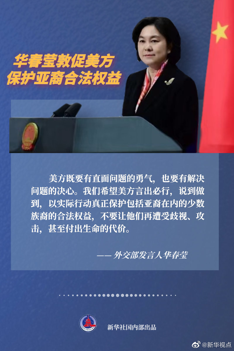 针对美国领导人日前谴责新冠肺炎疫情下美国针对亚裔的仇恨犯罪上升,外交部发言人华春莹3月22日表示,疫情发生以来,上一届美国政府散播虚假信息和种族歧视仇恨言论,直接导致的恶果就是在美亚裔饱受系统性种族歧视和仇恨犯罪摧残。美方既要有直面问题的勇气,也要有解决问题的决心。“我们希望美方言出必行,说到做到,以实际行动真正保护包括亚裔在内的少数族裔的合法权益,不要让他们再遭受歧视、攻击,甚至付出生命的代价。”(记者成欣、温馨、孙楠)