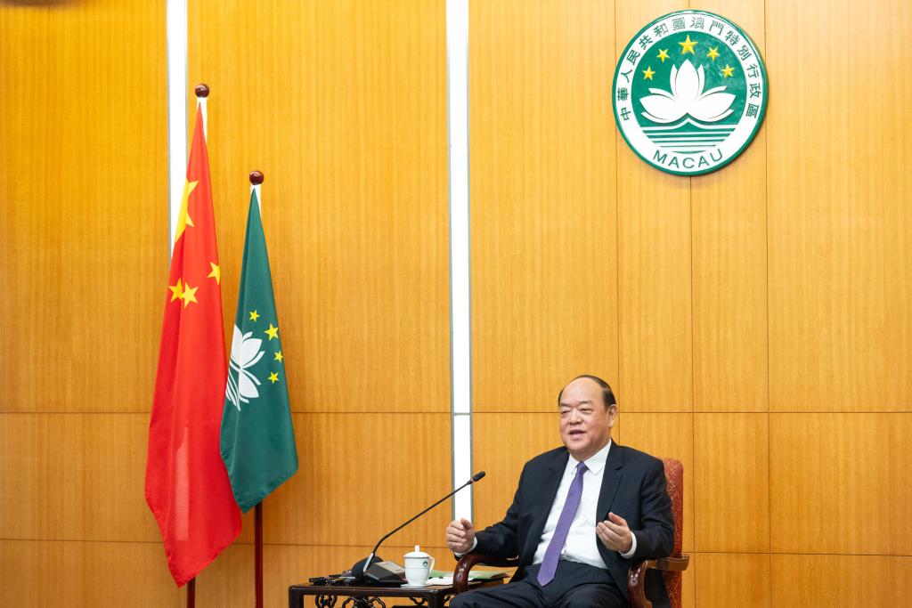 6月17日,澳门特区行政长官贺一诚在澳门特区政府总部接受媒体访问。新华社记者 张金加 摄