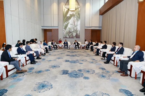 6月21日,中国外文局局长、第十四届全国政协常委杜占元,山东省人大常委会副主任王艺华在山东德州会见出席2024中国—东盟媒体合作论坛的中国—东盟中心秘书长史忠俊、老挝新闻文化旅游部副部长坡西·乔马尼冯、柬埔寨新闻部副国务秘书韩桑阿、菲律宾驻华大使吉米,以及来自东盟国家的驻华使节和主流媒体代表。德州市委书记、市人大常委会主任田卫东,中国外文局副总编辑、中国对外书刊出版发行中心(国际传播发展中心)主任陈实等中方嘉宾参加会见。