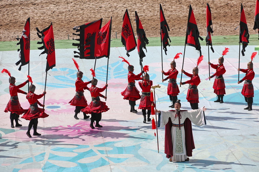 第十二届全国少数民族传统体育运动会马上项目分赛场演出情景音画《开拓》。