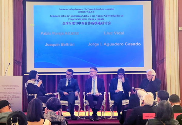 在交流讨论环节,西班牙学者代表表达了对中国治理模式和成效的高度认可,认为中国在解决实际问题(如能源、安全、发展)方面富有远见和成效。他们认为全球治理倡议回应了全球南方国家寻求更大代表性和发言权的诉求。这一倡议体现了中国维护现有国际关系基本准则和以联合国为核心的国际体系的立场。他们期待中国能在全球治理中发挥更大的领导作用,并呼吁欧盟放下偏见,与中国进行更深入、更务实的合作,共同推进全球治理体系的完善。