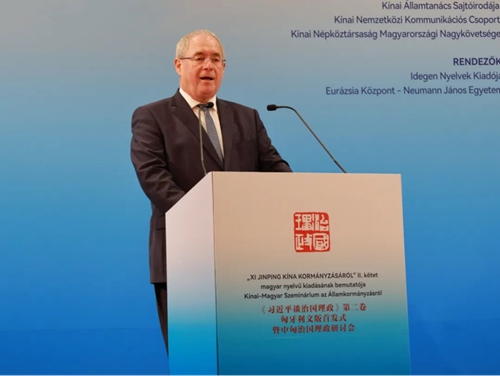 余应福表示,《习近平谈治国理政》蕴含着人民至上的深厚情怀、开放共赢的发展理念、全球治理的时代密码和文明互鉴的价值底色。这部著作匈牙利文版的翻译出版,将更好满足匈牙利民众对中国发展理念、现代化探索经验和丰富多彩中华文明的了解需求,也为渊源深厚的中匈文明保持互鉴交融持续搭建了思想桥梁。期待能以这部著作的翻译出版为契机,与匈牙利各界开拓更多合作领域与渠道,共同为推动中匈人文交流、增进两国人民友谊贡献力量。