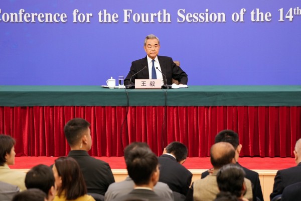 3月8日,十四届全国人大四次会议在北京梅地亚中心新闻发布厅举行外交主题记者会。记者会上中共中央政治局委员、外交部长王毅就元首外交、中美关系、中俄关系、全球治理倡议、主办亚太经合组织(APEC)领导人非正式会议、伊朗局势等问题回答中外记者提问。