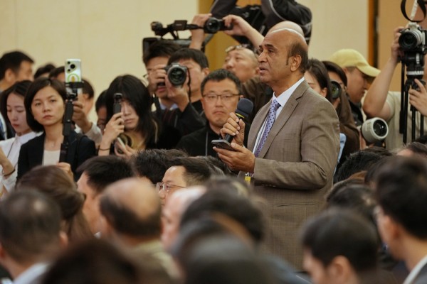 3月8日,十四届全国人大四次会议在北京梅地亚中心新闻发布厅举行外交主题记者会。这是中外记者提问。