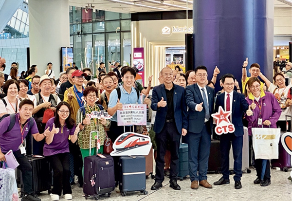 4.2024年6月15日,香港,市民参与香港中旅社的旅行团前往北京。当日,广深港高铁香港段动卧列车开通来往香港西九龙站至北京西站、上海虹桥站的夕发朝至列车班次