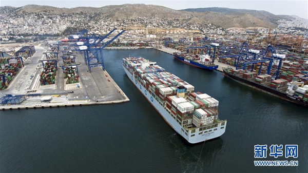 这是2017年5月7日,中远海运的货船驶出比雷埃夫斯港(比港)集装箱码头。中国远洋海运集团(中远海运)2010年10月1日正式接手希腊最大港口比港二、三号集装箱码头以来,这个枢纽工程已经成为海上丝绸之路的耀眼明珠。它不仅带动了中国企业“走出去”,也给当地经济和社会发展带来巨大收益,受到希腊各界的高度赞扬,被誉为中希两个文明古国携手共进的经典之作。新华社发(帕诺斯·托马达基斯摄)