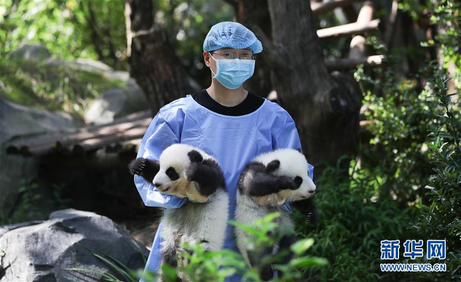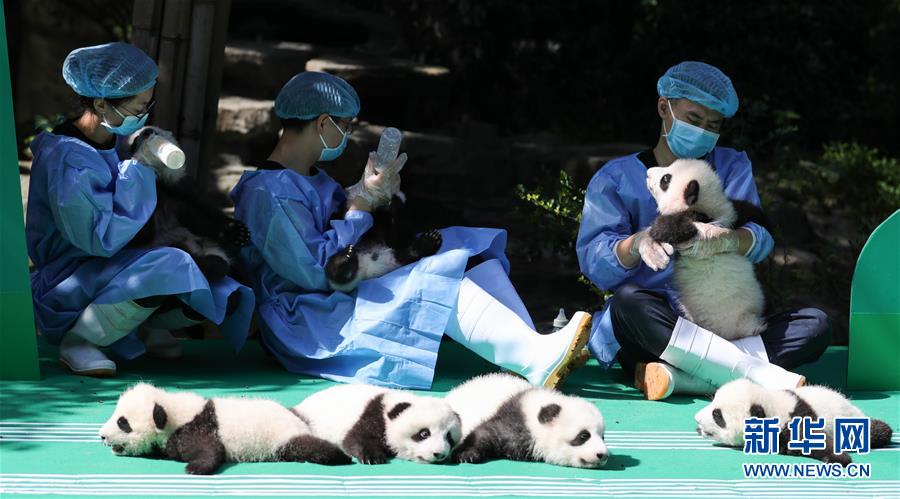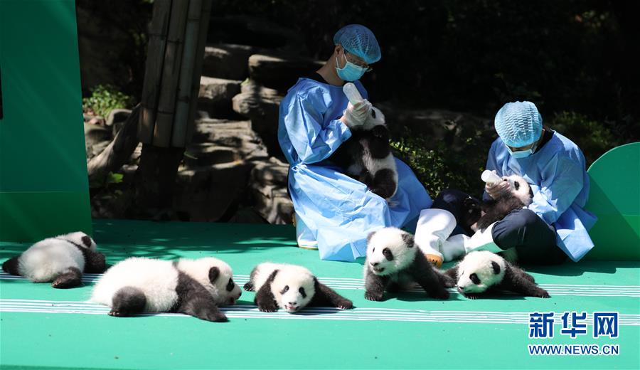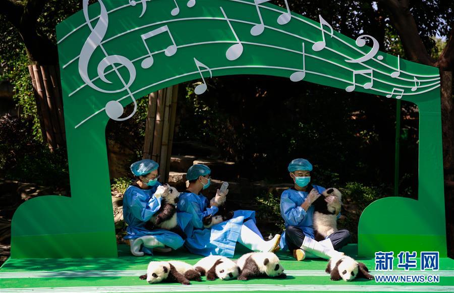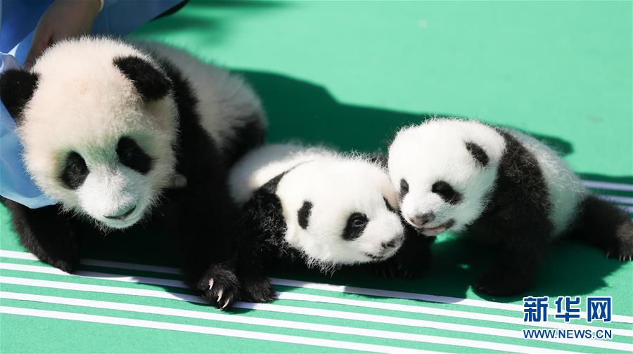 这是9月28日在成都大熊猫繁育研究基地月亮产房拍摄的大熊猫宝宝。 当日,成都大熊猫繁育研究基地为2018年出生的12只新生大熊猫宝宝举行了一场别开生面的亮相活动。 新华社发
