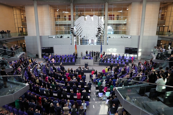 5月6日在德国柏林的国会大厦拍摄的德国新一届联邦政府成员宣誓就职现场