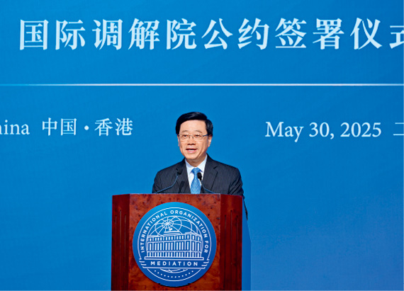 2025年5月30日,香港行政长官李家超在签约仪式上致辞时表示,“一国两制”优势,让香港具备优厚条件成为国际调解院总部的所在地