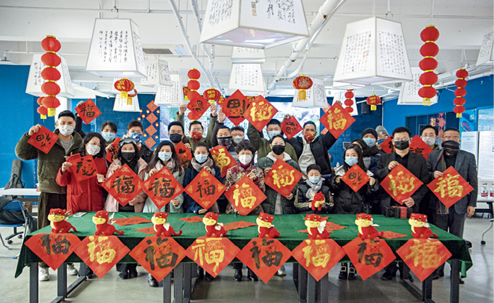 2022年 1月24日,四川成都,20余名台湾青年齐送“福”。当日,以“喜迎冬奥 面向未来”为主题的2022年全国台联第二十八届台胞青年冬令营四川分营开营,20余名台湾青年齐聚成都,分享冬奥会知识,体验成都非遗文化等