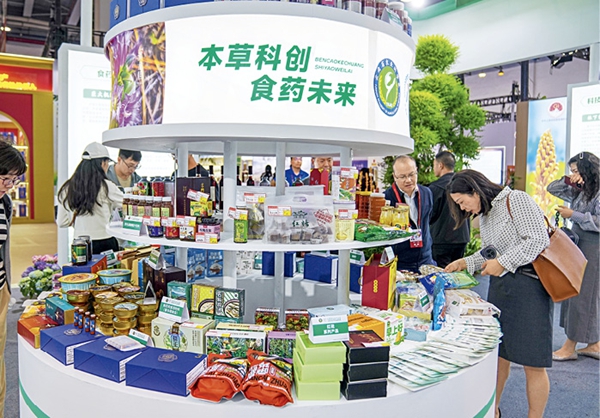 2025年6月19-24日,在云南昆明举办的第9届中国—南亚博览会暨第29届中国昆明进出口商品交易会首次设立中药材产业馆,全方位展示了云南及国内外中药材全产业链发展成果,为全球中医药产业搭建合作交流新平台。图为云南省药食同源科技成果展示