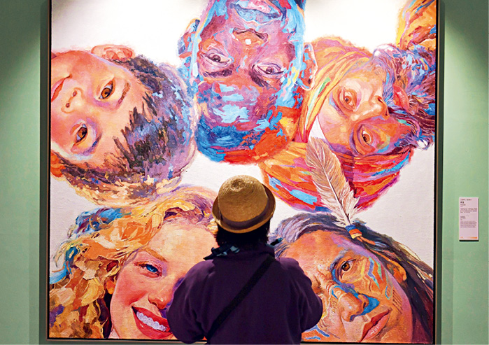2025年第十届中国北京国际美术双年展上,加拿大艺术家的油画作品《共生》以五大洲人物肖像,诠释和合共生的深刻理念 图/本刊记者 董 宁