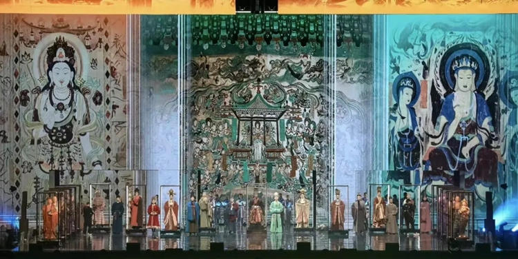 AIGC技术的使用,在舞台上复现了敦煌昔日盛景,也还原了盛唐时期敦煌壁画与彩塑最初示人时的鲜活原貌,使观众深切感受到了文明重生的震撼。“这样大胆的尝试让观众见证了科技与艺术碰撞出的无限可能,也把作品打磨成跨越国界的精品文化载体,让中华文明的生命力和中国式现代化的先进水平在国际舞台上得以绽放。”田沁鑫说。