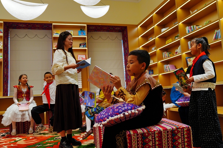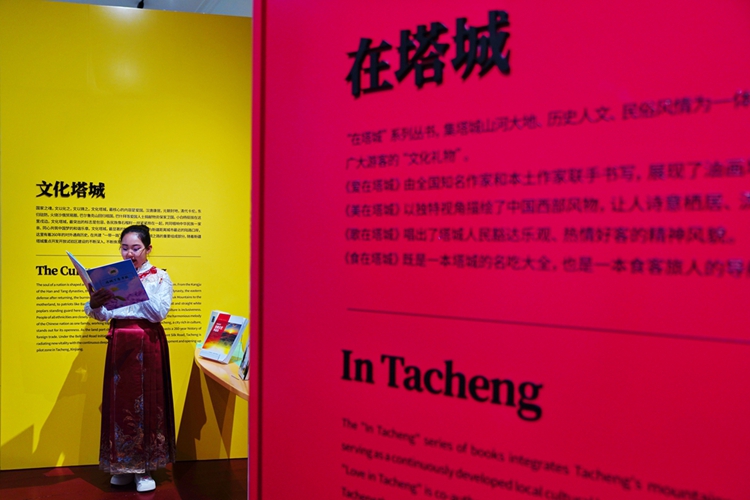 9月13日,文学爱好者在文学馆感受艺术氛围,了解塔城