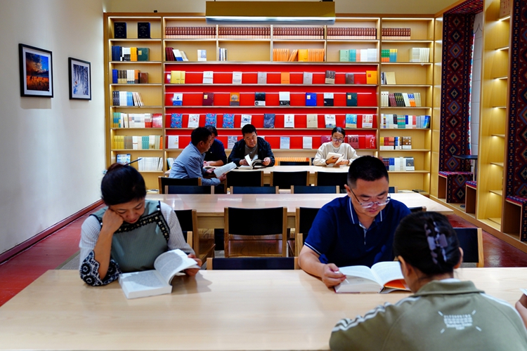 9月13日,当地居民结伴来到文学馆微型书店阅读书籍、欣赏艺术作品