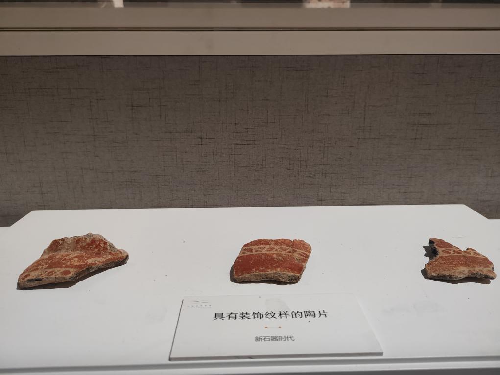 图为黄山上遗址出土的跨湖桥文化时期的陶片。新华社记者 冯源 摄