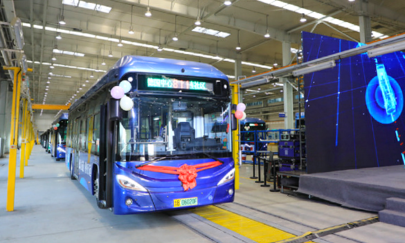 △ 1月28日,青岛首条氢能源公交运行线开通仪式在山东自贸区青岛片区举行。据了解,氢能源公交加注一次氢气仅需15分钟,而且全程零污染,满载续航里程可达300公里。(图源:东方IC)