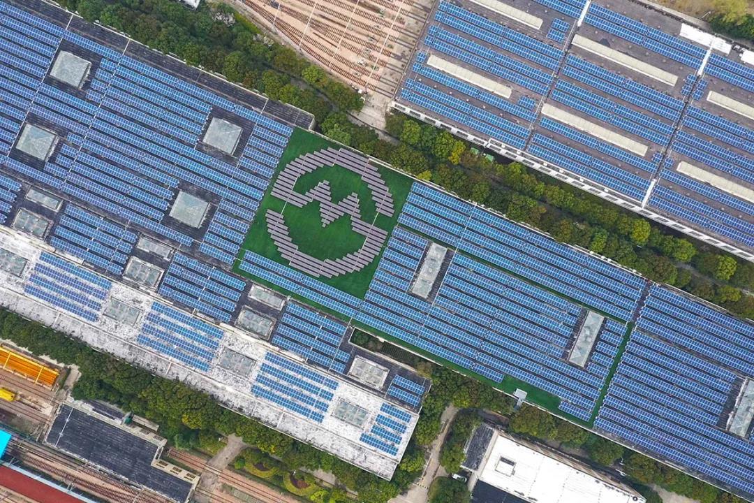 △ 在位于上海浦东新区的龙阳路地铁基地的车库屋顶,隐藏着一座“发电厂”。太阳能板总面积达5万平方米,可源源不断为地铁列车提供电能。据统计,这个光伏电站2019年底并网发电,一年的发电量大约可供8节编组的一辆2号线列车跑20万公里,相当于行驶1560多个来回。目前,上海地铁已有川杨河、治北、金桥、龙阳路、三林等10个车辆基地完成了光伏发电系统并网,总装机容量合计约24兆瓦,年均发电量约2300万度。(图源:东方IC)