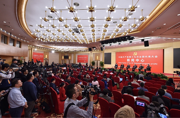2017年10月19日,中国共产党第十九次全国代表大会新闻中心举行主题为“推进全面依法治国”的集体采访活动