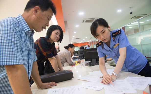 2017年8月17日,在浙江省宁波市奉化区行政服务中心,奉化一家公司在商事登记窗口办理公司注册手续。目前全国所有省市县三级政府部门权责清单均已公布,明确政府机构、职能、权限、程序,厘清权力边界