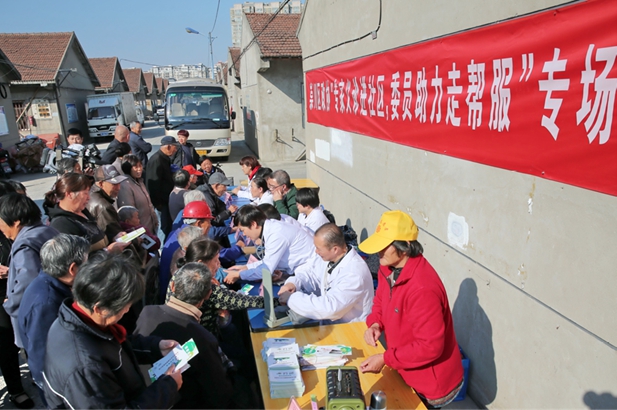 2017年10月31日,江苏省南通市崇川区政协“专家义诊进社区,委员助力走帮服”活动在观音山新城星火社区过渡房举行,医卫界政协委员、多家医院的专家们为社区居民进行了义诊和咨询