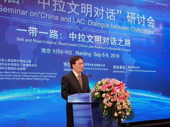 9月8日,由江苏省人民政府外事办公室、中国社会科学院拉丁美洲研究所、中国外文局朝华出版社联合主办,墨西哥维拉克鲁斯大学协办、南京财经大学承办的第二届“中拉文明对话”研讨会在江苏南京开幕。来自中国和拉美13个国家的政府官员、企业家、学者、记者及文化机构的代表就“一带一路:中拉文明对话之路”这一主题展开探讨和交流。
