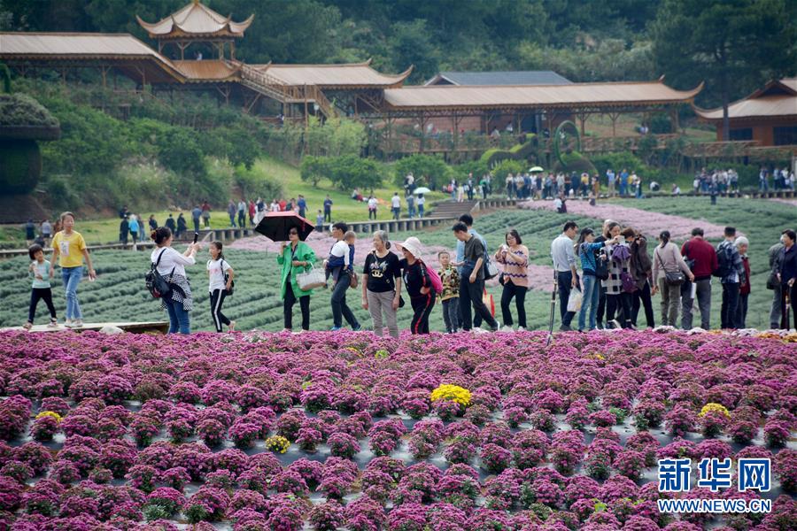 10月4日,游客在贵州省麻江县宣威镇的一处菊花园中赏花游玩。