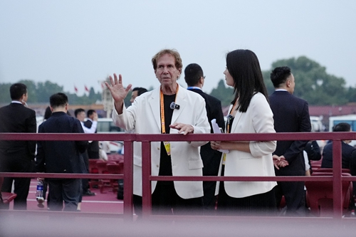 9月3日,纪念中国人民抗日战争暨世界反法西斯战争胜利80周年大会在北京隆重举行。这是外籍记者现场报道盛况