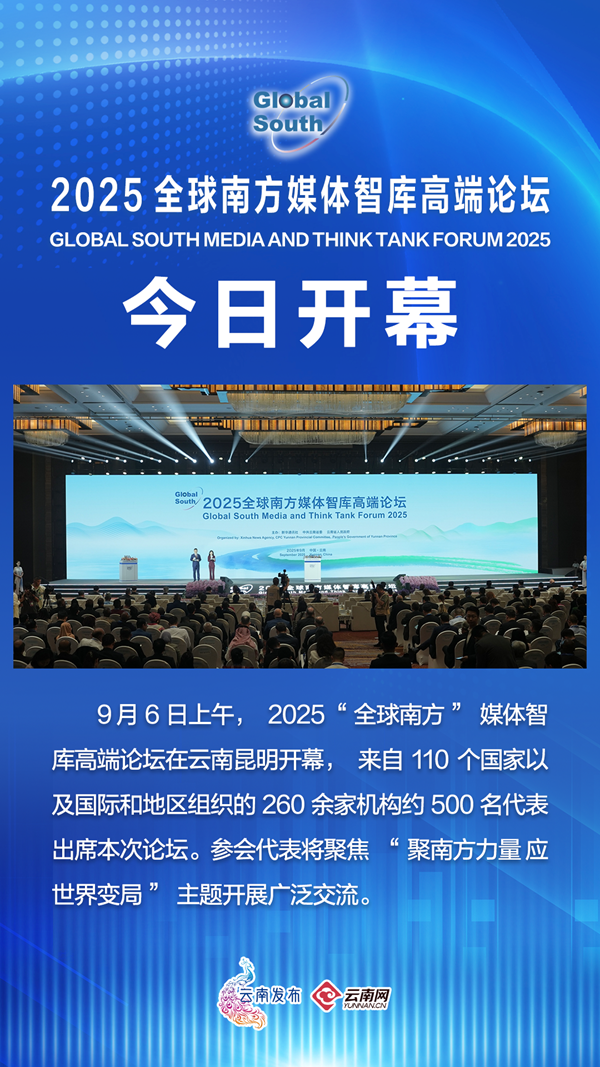 9月6日上午,2025“全球南方”媒体智库高端论坛在云南昆明开幕,本次论坛由新华通讯社、中共云南省委、云南省人民政府共同主办。这也是“全球南方”媒体智库高端论坛继2024年之后第二次举行。