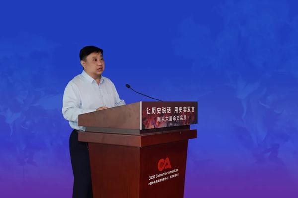 今年是中国人民抗日战争暨世界反法西斯战争胜利80周年。中国人民抗日战争开辟了世界反法西斯战争的东方主战场,为世界反法西斯战争的最后胜利作出不可磨灭的重要贡献。其中,震惊中外的南京大屠杀是这段历史中不能忘却的记忆。“但令人遗憾的是,时至今日国际社会对正确二战史观的认识还有欠缺,对中国人民抗日战争为世界反法西斯战争最终胜利所作的重要贡献还缺少共鸣。这些都有悖于历史正义。”中国外文局美洲传播中心主任辛峰在开幕致辞中说。