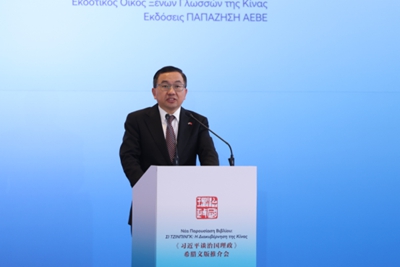谢刚表示,党的二十届四中全会审议通过的《中共中央关于制定国民经济和社会发展第十五个五年规划的建议》,系统部署了扩大高水平对外开放等重大举措,充分展现了中国坚持开放合作、互利共赢的信心。他指出,《习近平谈治国理政》希腊文版的出版,将帮助希腊读者深入了解新时代中国以全面深化改革为根本动力、以人民至上为根本立场、以文明互鉴为对话桥梁、以多边主义为全球治理基本路径的治国理政智慧。期待以书为媒,进一步拉紧中希文明互鉴和务实合作纽带,为推动两国全面战略合作伙伴关系发展注入新的思想动力。