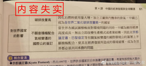 事实上,这已不是近期台湾地区初中二年级教科书内容第一次出现争议了。